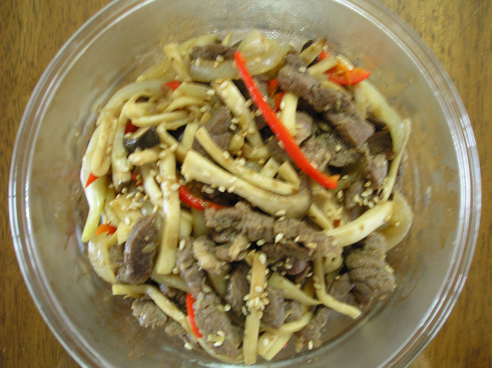 * 쇠고기 버섯 볶음 완성! 나들이 때 해 가지고 가면 안성맞춤.