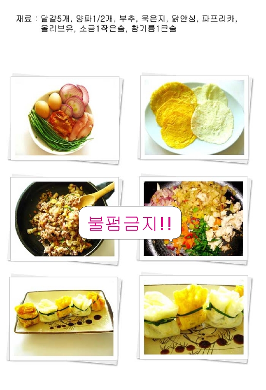 달걀,양파,부추,묵은지,닭안심,파프리카, 올리브유,소금,참기름