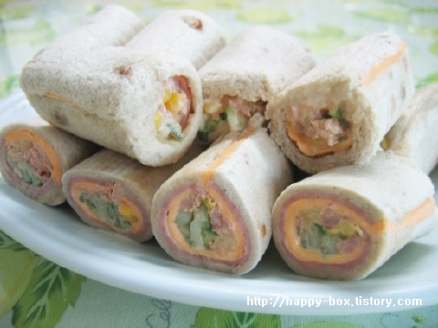 식빵, 햄,치즈,옥수수콘.오이,마요네즈,참치통조림,랩(샌드위치를 말때 필요하답니다)