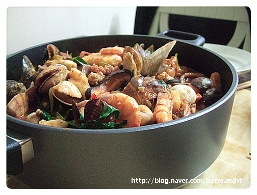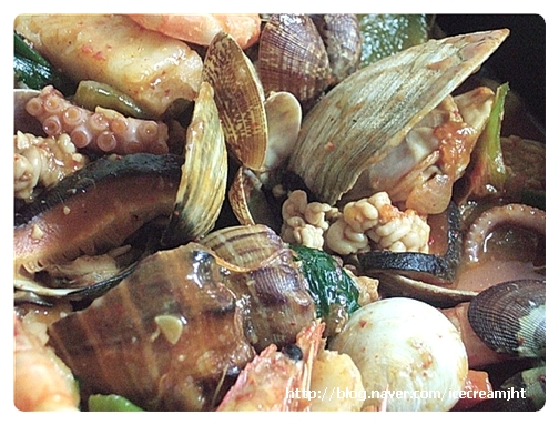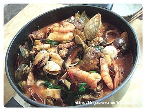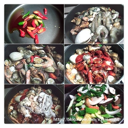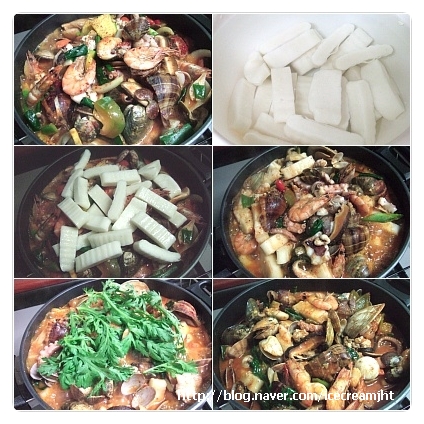 각종해산물, 각종해산물, 떡, 대파, 양파, 호박, 표고버섯, 고추, 당근, 청주, 고추씨기름, 올리브유