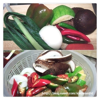 야채는 손질후 씻은후 적당한 크기로 썰어준다