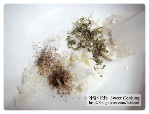 버터 1큰술반, 파슬리가루 2/3큰술, 소금, 후추 적당량을 고루 섞어준 후