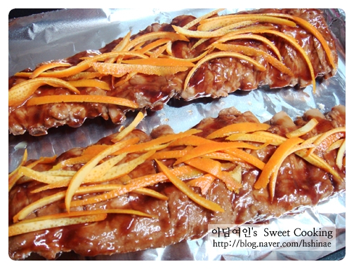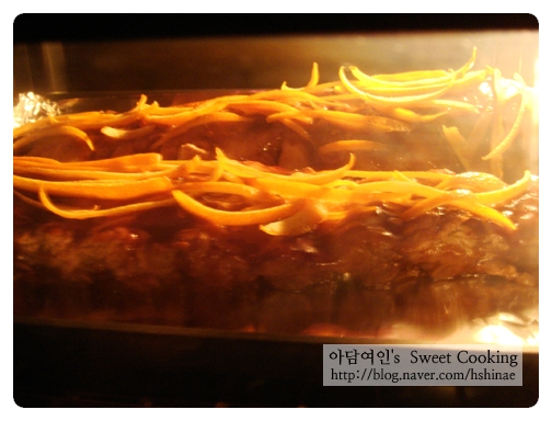 채썬 오렌지를 올려놓구선 20여분 재워주었어요.
