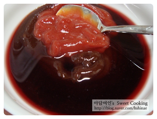 바베큐소스 1컵, 케챱 2큰술, 진간장 2큰술, 꿀 1큰술, 적포도주 2큰술을 넣고