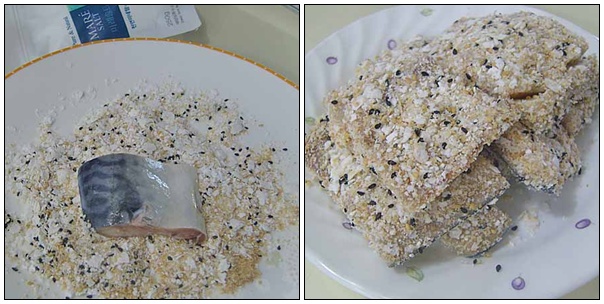 고등어, 쌀가루,참깨가루,흑임자,소금,포도씨유