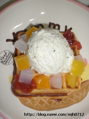 노릇하게 구워진 와플을 식혀서 쨈등을 발라 장식한다.