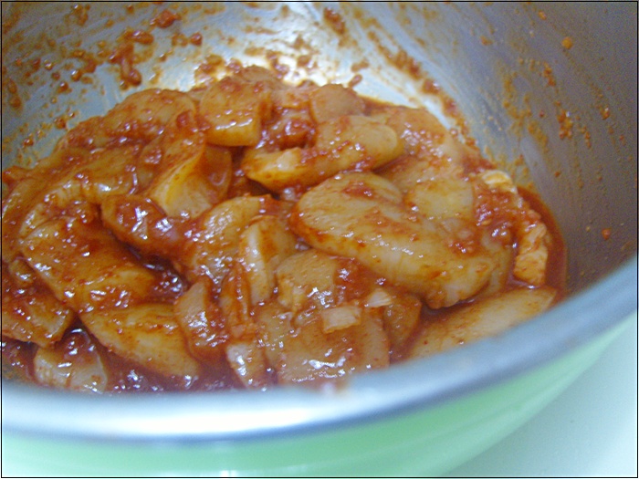 고추장2,간장1,마늘1,청주1,물엿1,참기름,생강즙약간
