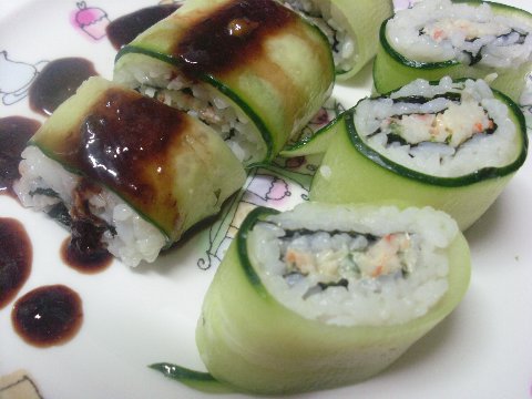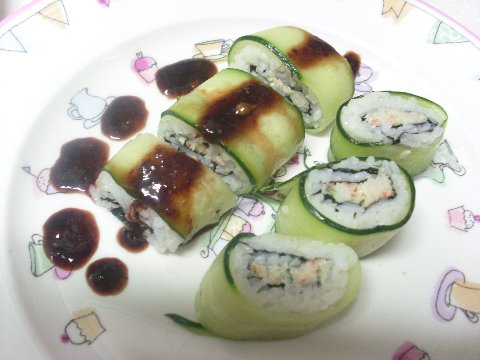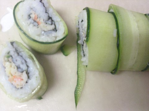 돌돌 말아 준 다음 오이 슬라이스를 감아 줍니다