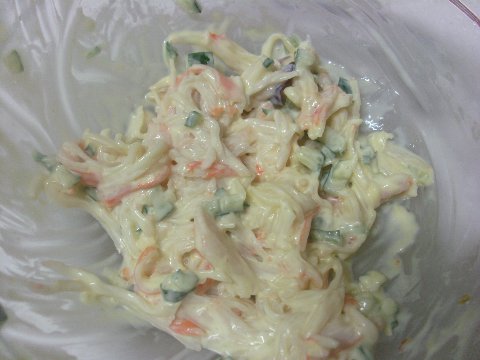 다진오이와 맛살을 찢고 마요네즈와 머스타드`
