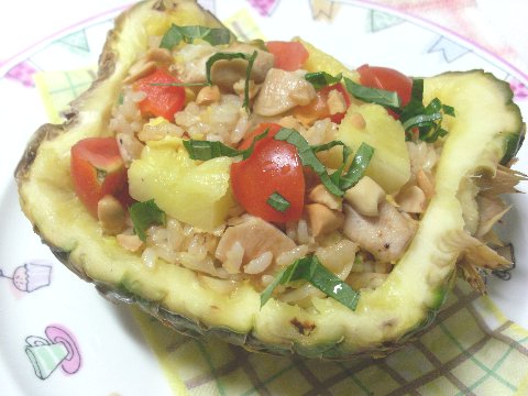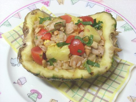 파인애플을 그릇삼아 담아 놓으니 파인향이 볶음밥에까지