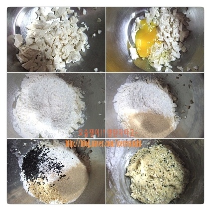 여기에 참깨와 검은깨를 적당히 넣어 고루 잘 섞어준다