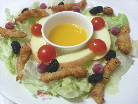 바삭바삭한 포크커틀릿에 상큼한 야채들이 한데 어우러지고