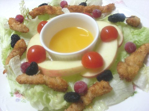 , 양상추,방울토마토,사과,앵두,오디,파인애플,떠먹는 요구르트