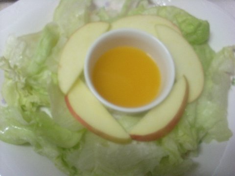 양상추를 깔고 사과를 소스옆에 둘러 줍니다.