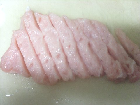 돼지고기 안심을 길게 자른후 소금 후추를 뿌려 밑간을 하고