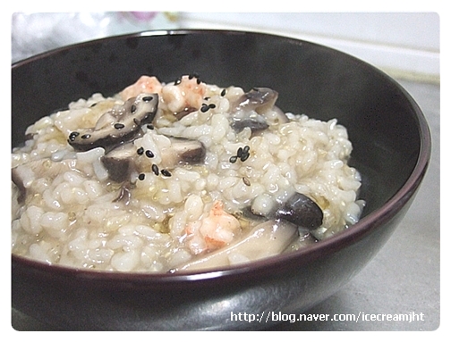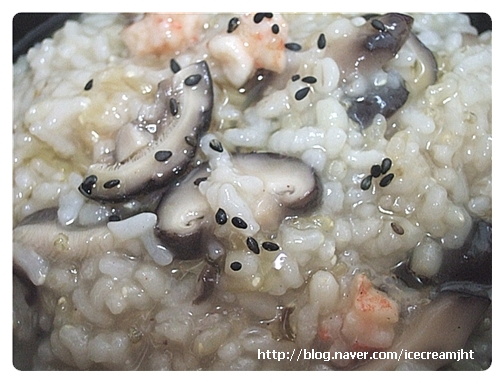 다 완성이 되면 그릇에 떠서 담고 참기름과 검은깨를 올린다
