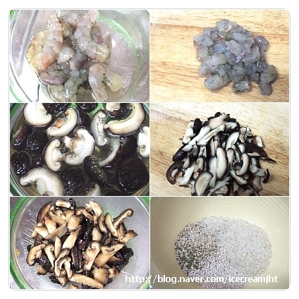 새우, 건표고버섯, 생새우, 건표고버섯, 잡곡(백미, 찹쌀현미, 찹쌀보리, 조), 국간장, 간장, 후춧가루, 참기름, 소금