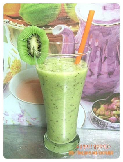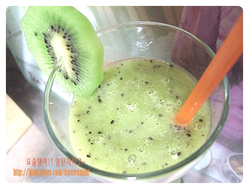 키위, 키위 5개, 사이다 1컵, 꿀 2큰술, 얼음 몇조각