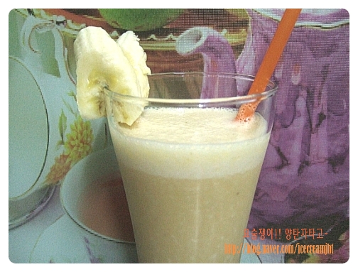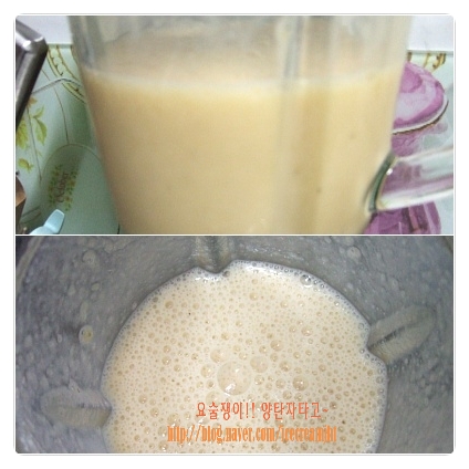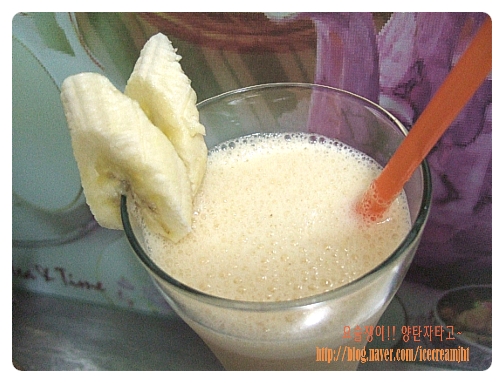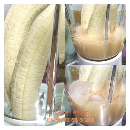 믹서기에 바나나를 껍질을 벗기고 넣어준다