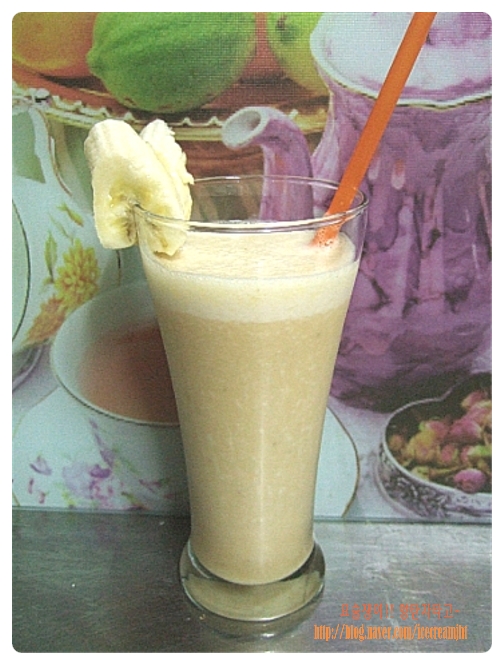 여기에 요구르트을 부어주고, 얼음도 넣어준다
