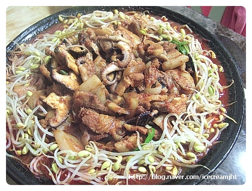 거기에 양념한 삼겹살과 주꾸미를 넣어준다