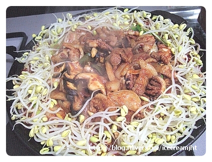 여기에 삶아 둔 콩나물도 둘러 담는다