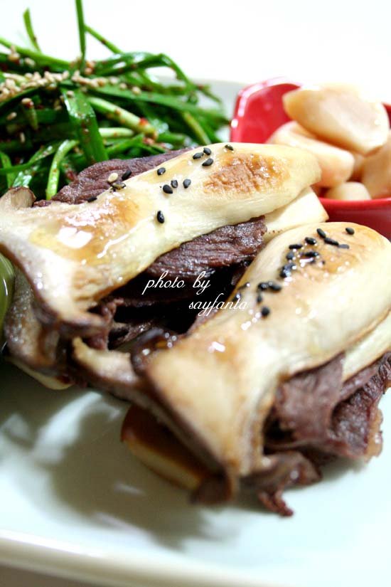한우, 새송이 버섯, 부추, 참기름, 마레솔트
