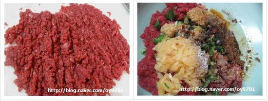 , 고기양념: 다진파1, 다진마늘1, 다진생강1/2, 설탕1,