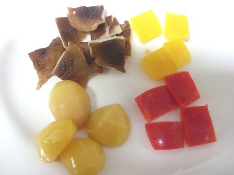 파프리카, 표고버섯,완두콩,밤