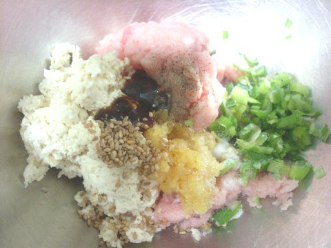 갈은 등심에 으깬두부와 양념을 넣어 주세요