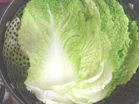오른 찜통에 배추를 넣고 10분정도 쪄 줍니다.