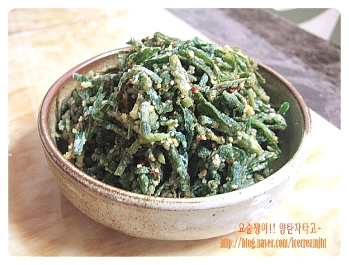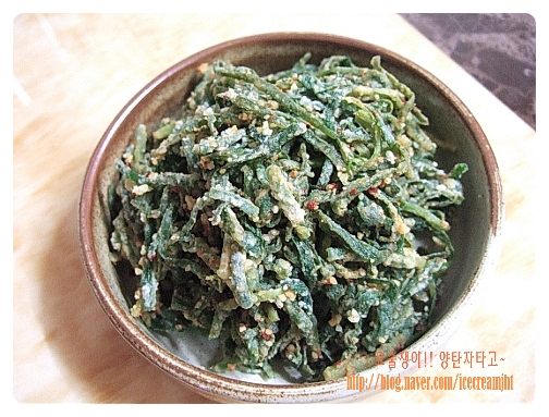 생콩가루, 부추, 생콩가루, 부추, 간장, 고춧가루, 참기름