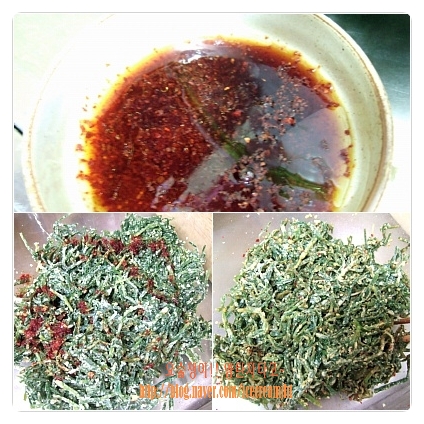 그릇에 간장, 고춧가루, 참기름을 넣어 양념장을 만든후 식힌 부추에 부어서 반드시 젓가락으로 양념을 부쳐준다. 이때 간이 싱거우면 소금을 약간 더 넣어준다
