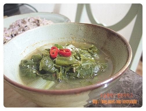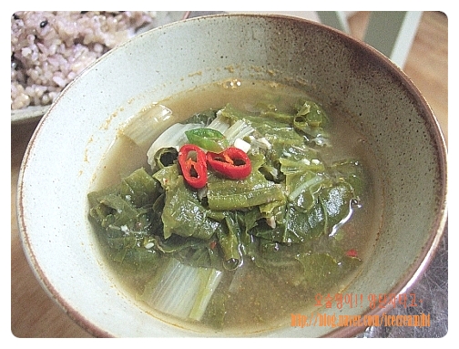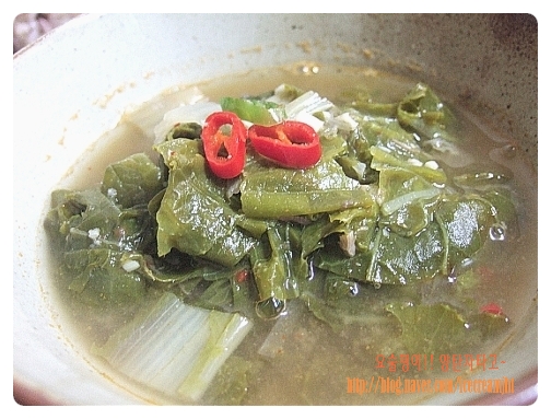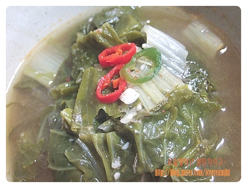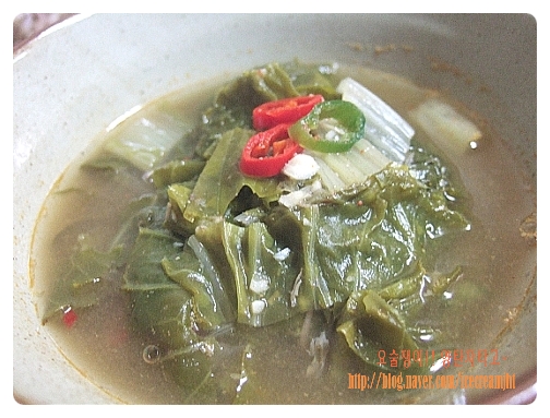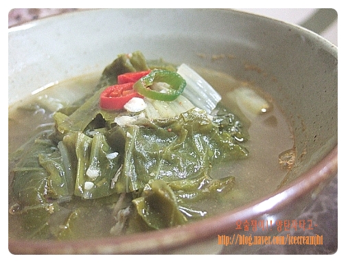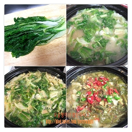 사골국물, 우거지, 사골국물, 우거지, 청양고추, 고춧가루, 집된장, 다진마늘