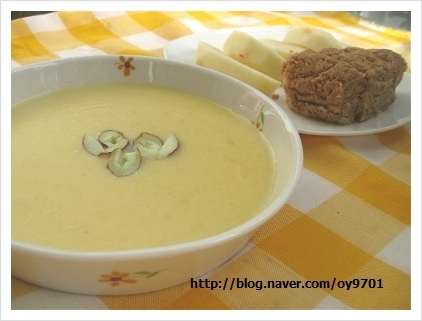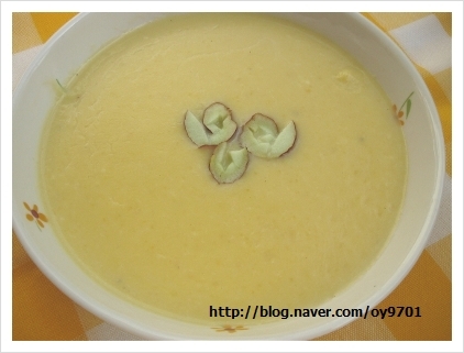 변비 예방에 탁월한 효과가 있는 고구마로 부드러운 스프를 만들었어요