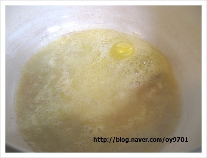 그리고 냄비에 버터 한큰술 넣고 녹이고, 밀가루도 1큰술 넣고