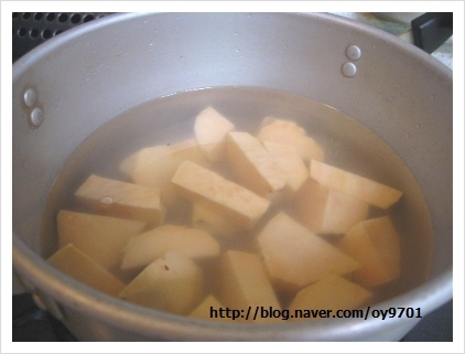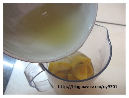이때 고구마 삶은 물 버리지 말고 다시 고구마양에 2/3정도 넣고 갈으면 더 맛있어요.