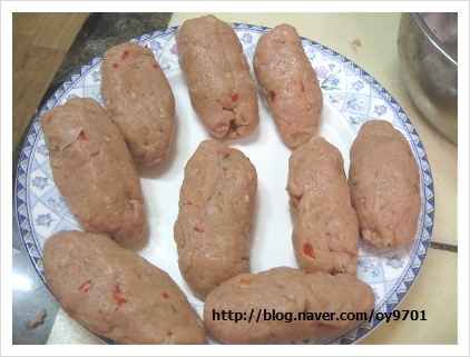 수제 소세지 ... 돼지고기 뒷다리살 다짐육으로 끊임없는 패대기?를 쳐서 만든