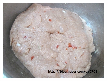넣고 반죽한 후에 믹서기에서 아주 천천히 갈아 주세요..