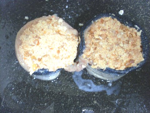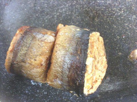 꽁치 중간에 볶은 재료를 소를 채워 줍니다.