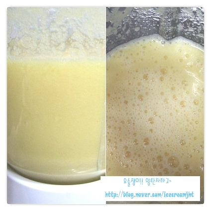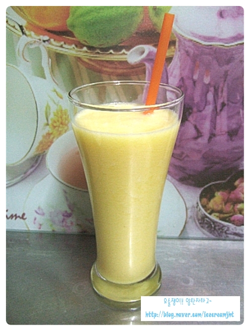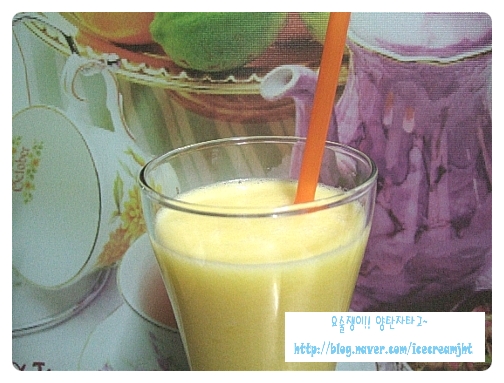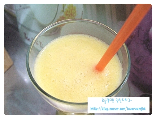 갈면서 오렌지주스로 농도를 조절하세요~~~