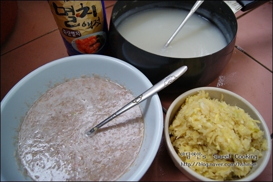 새우젓은 다져서 멸치액젓과 섞어놓고