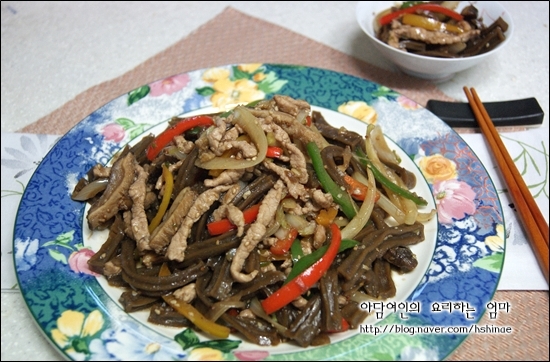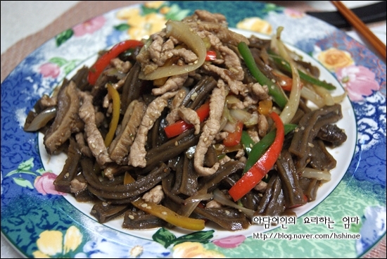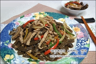 쫄깃한 맛이 일품인 말린묵으로 만든 묵잡채.
