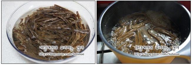 말린 묵은 찬물에 두어시간 동안 불린 후
