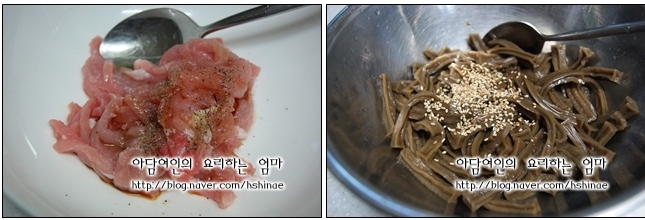돼지고기는 저염간장 1큰술, 참기름 1/2작은술, 후춧가루 약간을 넣고 밑간을 해주고
