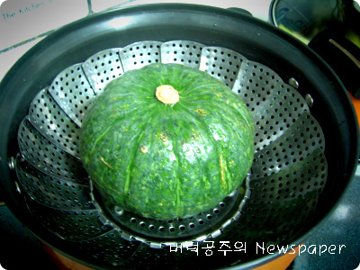 1. 단호박을 채반에 놓고 쪄요~