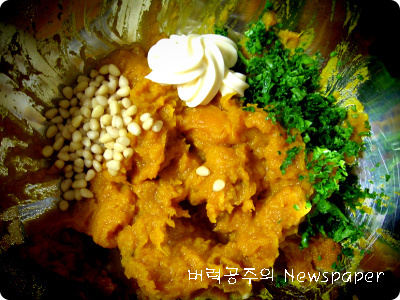 준비해놓은 파슬리찹과 잣과 마요네즈 적당량을 넣고 비벼요~