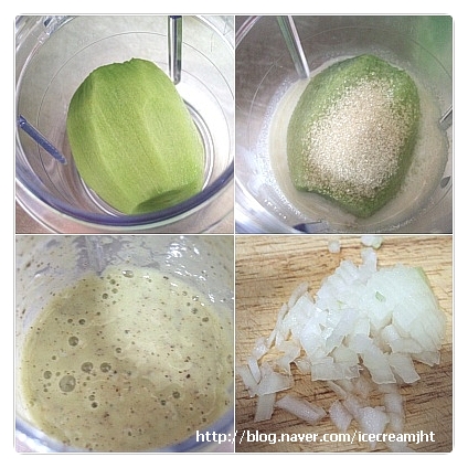 믹서기에 다진양파를 뺀 재료를 모두 넣고 갈아준다