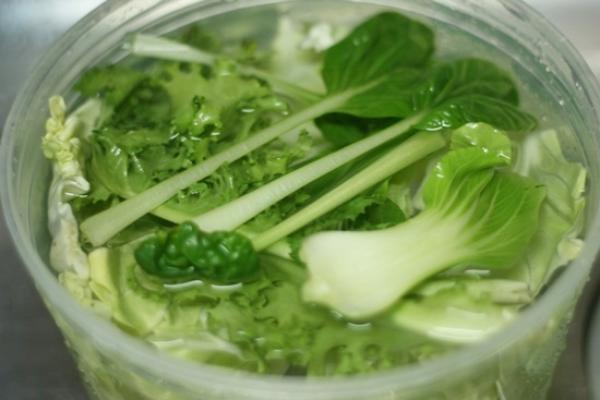 샐러드채소는 물에 담가 씻어 물기를 털어내주시고요.