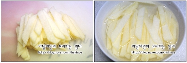 또한 다른 재료 준비하는 동안 갈변을 막기위해 살짝 설탕물에 담궈두었네요..
